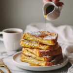 - Serve: Plate the French toast warm. Optionally, dust with powdered sugar, garnish with fresh berries, and drizzle maple syrup over the top as desired for added sweetness and presentation.
