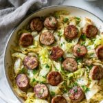 A hearty and flavorful Kielbasa and Cabbage Skillet featuring browned kielbasa, tender sautéed cabbage, and a tangy mustard vinaigrette. This easy one-pan meal is perfect for a comforting dinner with a delightful blend of savory and slightly tangy flavors.