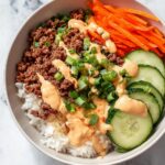 A quick and flavorful Korean Beef Rice Bowl recipe that combines tender ground beef cooked in a savory and mildly spicy sauce with fresh vegetables, kimchi, and a creamy gochujang mayo. Perfect for an easy weeknight dinner, this dish offers a delicious balance of sweet, spicy, and umami flavors served over fluffy jasmine rice.
