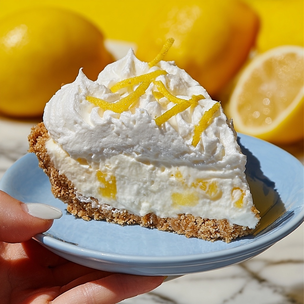When your pie is ready to be served, top it generously with whipped cream and arrange fresh lemon slices on top. These finishing touches bring a lovely contrast and a burst of citrusy color that make your pie irresistible on any dessert table.