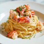 To wow guests, serve this Lobster Pasta with Cream Sauce Recipe in individual shallow bowls, garnished with a sprig of fresh tarragon. For a fancy touch, drizzle a little herb-infused olive oil around the rim or add edible flowers for a pop of color. Even plating a lemon wedge on the side invites those delightful citrus notes to shine.