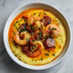 This Lowcountry Shrimp and Grits recipe brings the classic Southern comfort dish to your table with creamy stone-ground grits topped with a flavorful shrimp and andouille sausage gravy. The grits are cooked slow and creamy with butter, cream, and sharp cheddar cheese, while the shrimp are seasoned with Creole Cajun spices and sautéed along with smoky sausage and a medley of sautéed vegetables. A rich, velvety sauce made with garlic, bell pepper, onion, celery, and a touch of cream completes this hearty and satisfying meal perfect for brunch or dinner.