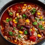 This Mexican Beef and Rice Soup is a hearty and flavorful dish combining ground beef, rice, black beans, and vegetables simmered in a spiced tomato and beef broth. Perfect for a comforting meal, it’s enhanced with cumin, chili powder, and fresh lime juice, topped with cheese, sour cream, avocado, and crispy tortilla strips for a vibrant and satisfying experience.