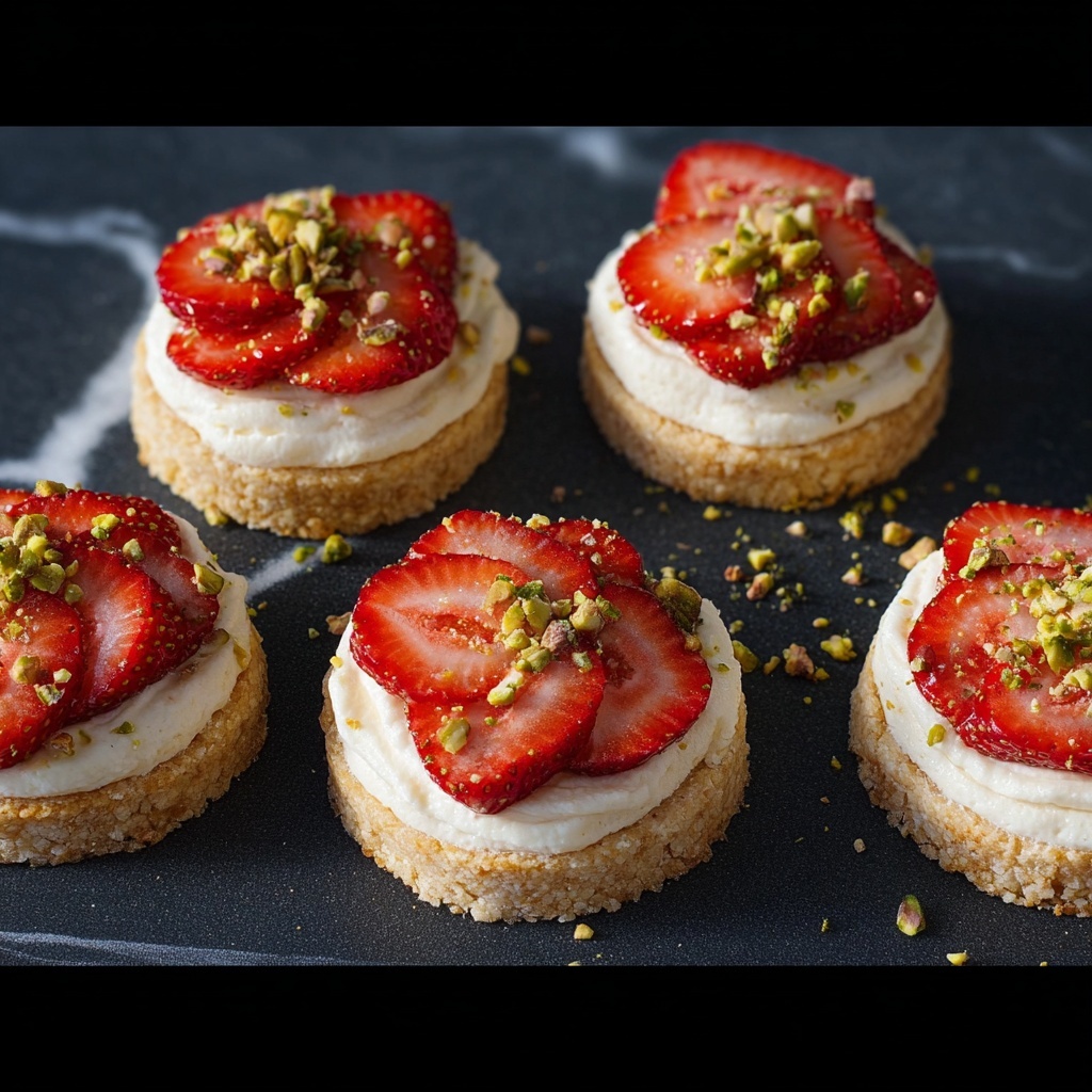 These Mini Strawberry-Pistachio Mascarpone Tarts are delightful bite-sized desserts featuring a buttery pie crust base topped with creamy mascarpone, sweet strawberry jam, fresh sliced strawberries, and a crunchy sprinkle of roasted pistachios. Perfect for elegant gatherings or casual treat times, these tarts combine fresh flavors and textures in just 35 minutes.