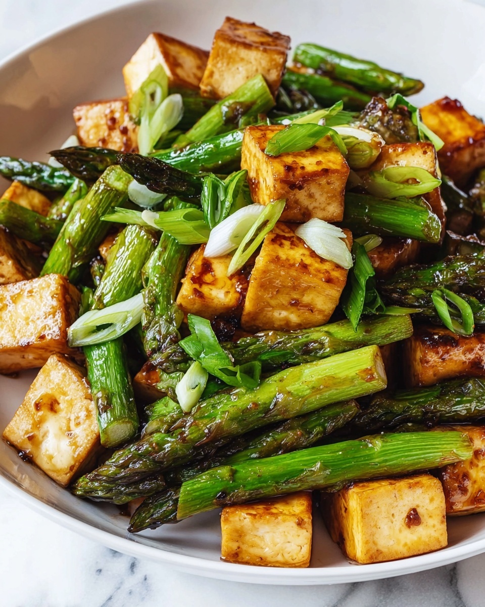 Reheat leftovers gently in a skillet over medium-low heat to maintain the tofu’s firmness and asparagus’ crispness. Avoid the microwave if possible, as it can make the tofu rubbery and the asparagus soggy.