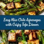 A vibrant and flavorful Miso-Chile Asparagus with Tofu recipe that combines tender asparagus and crispy tofu coated in a savory miso-chile glaze. This quick and healthy dish features a blend of miso, sake, rice vinegar, mirin, and toasted sesame oil for an umami-packed experience with a spicy kick, perfect for a light lunch or dinner.