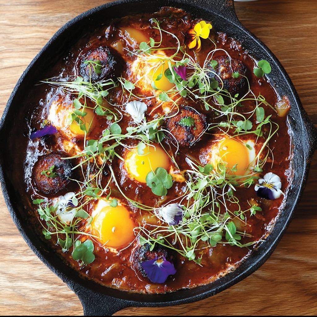 Yes! For a heartier meal, consider adding cooked merguez sausage or ground lamb. Brown the meat separately, then stir it into the tomato sauce before poaching the eggs to keep all those flavors distinct yet harmonious.