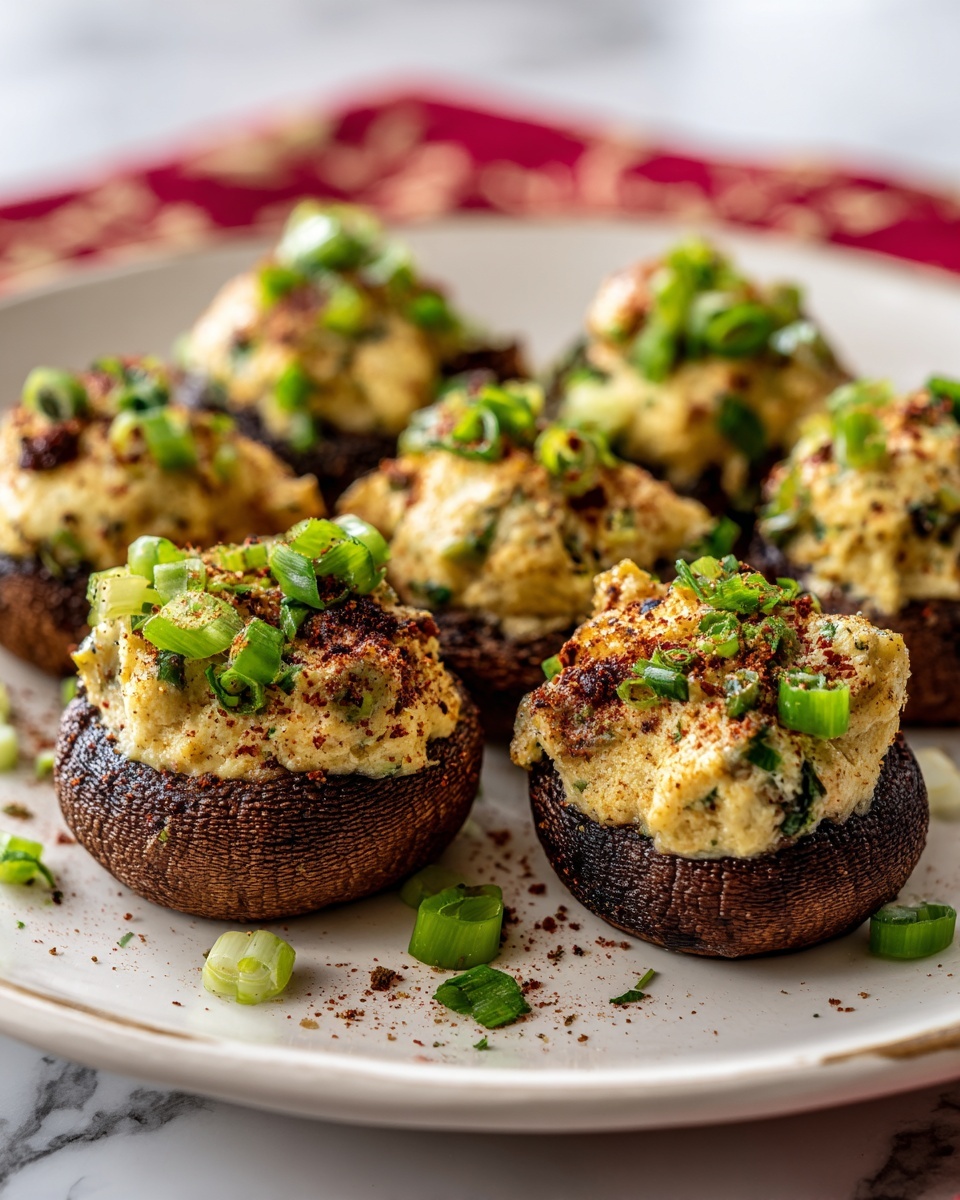 These stuffed mushrooms make an excellent appetizer but pair beautifully with light, fresh sides such as a crisp green salad or a citrusy slaw. For a heartier meal, consider serving alongside grilled asparagus, roasted baby potatoes, or a delicate rice pilaf that complements without overwhelming the flavors.