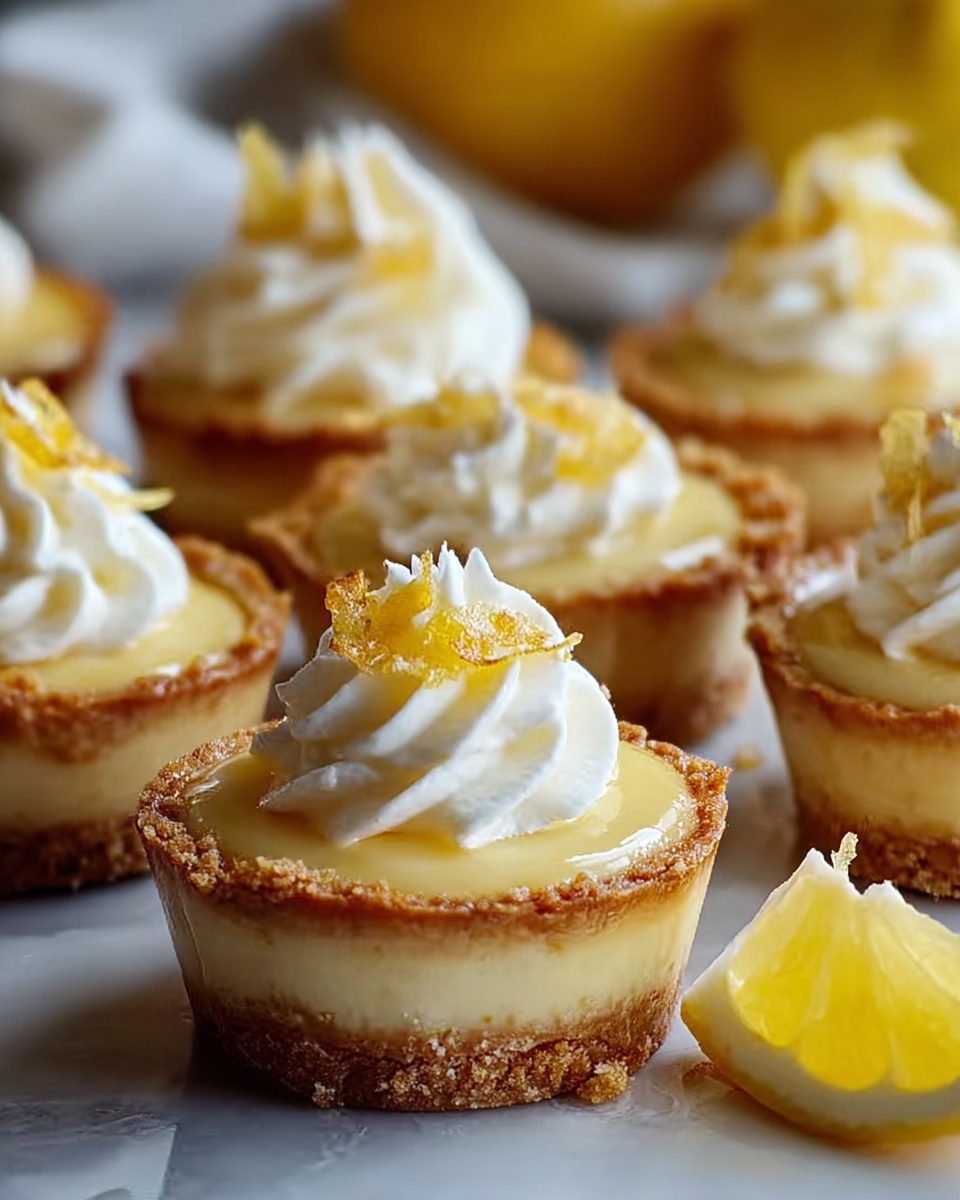 - Assemble the cups: Spoon or pipe the lemon cream cheese filling evenly over the prepared crust in each cup. Smooth the tops with a spatula or the back of a spoon for a polished appearance.