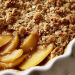 Gently spread the topping evenly over the apple filling, pressing lightly to help it adhere. Then pop your dish in the preheated oven and bake for 40 to 50 minutes. You’ll know it’s done when the topping is a gorgeous golden brown, and the apple juices have bubbled up through the cracks, filling your kitchen with that irresistible warm-spicy aroma.