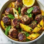 This One-Pan Greek Meatballs and Potatoes recipe offers a flavorful and authentic Greek meal, combining juicy lamb and beef meatballs with tender, oregano-infused roasted potatoes. The dish is finished with a bright and tangy ladolemono lemon-olive oil sauce, delivering fresh Mediterranean flavors in an easy, oven-baked preparation that’s perfect for a family dinner or entertaining guests.