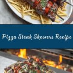 Pizza Steak Skewers combine layers of thinly sliced top sirloin, spicy sausage, pepperoni, mozzarella, and pizza sauce, all assembled and frozen before being grilled to perfection. This hearty, flavorful recipe is perfect for a unique twist on pizza and steak, served with crispy fries and dipping sauces.