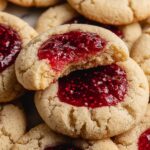 While frozen raspberries are delicious, they may release too much moisture during baking, making the cookies soggy. Raspberry jam or preserves work best as they hold their shape and sweetness perfectly in the indentation.