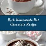 This rich homemade hot chocolate is a creamy, decadent beverage perfect for cozying up on chilly days. Made with whole milk, heavy cream, cocoa powder, and melted semi-sweet chocolate, it’s topped with optional whipped cream or marshmallows for an indulgent treat that’s easy to prepare on the stovetop.