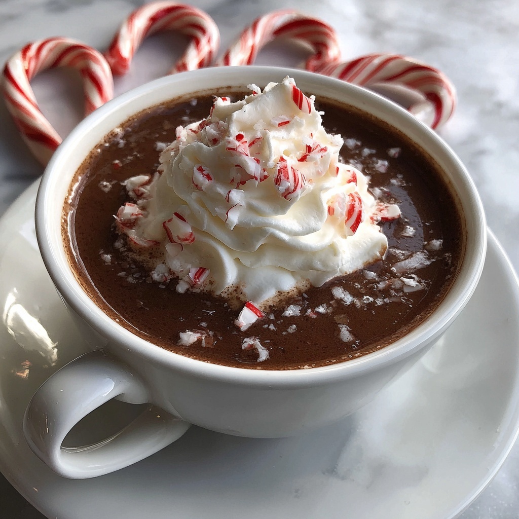 - Serve: Pour the hot chocolate into mugs and, if using, top with whipped cream and crushed peppermint candies for a festive finish. Serve immediately while warm to enjoy the best flavor and texture.
