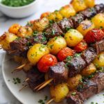 These Rosemary Garlic Steak Kebabs feature tender sirloin marinated in a flavorful balsamic garlic mixture, paired with juicy grape tomatoes and baby potatoes. Grilled to perfection, these skewers are perfect for a quick, satisfying meal with a fresh herb twist.