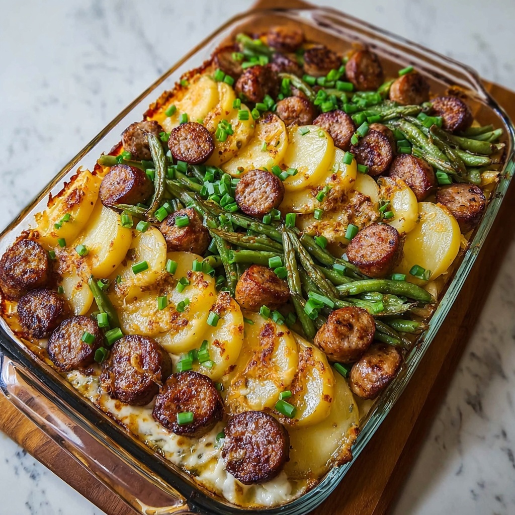 A hearty and flavorful Sausage Green Bean and Potato Casserole that combines smoked sausage, tender baby potatoes, and fresh green beans, seasoned with aromatic herbs and spices, then baked to perfection. This one-dish meal is easy to prepare and perfect for a comforting dinner with family or friends.