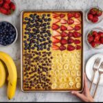 Delight in these easy-to-make Sheet Pan Pancakes that bring the classic breakfast favorite to your oven in one convenient bake. This recipe features a fluffy, golden pancake base topped with sections of fresh strawberries, blueberries, sliced bananas, and semi-sweet chocolate chips. Perfect for serving a crowd, these sheet pan pancakes are a fun and delicious way to enjoy a variety of flavors all in one dish.