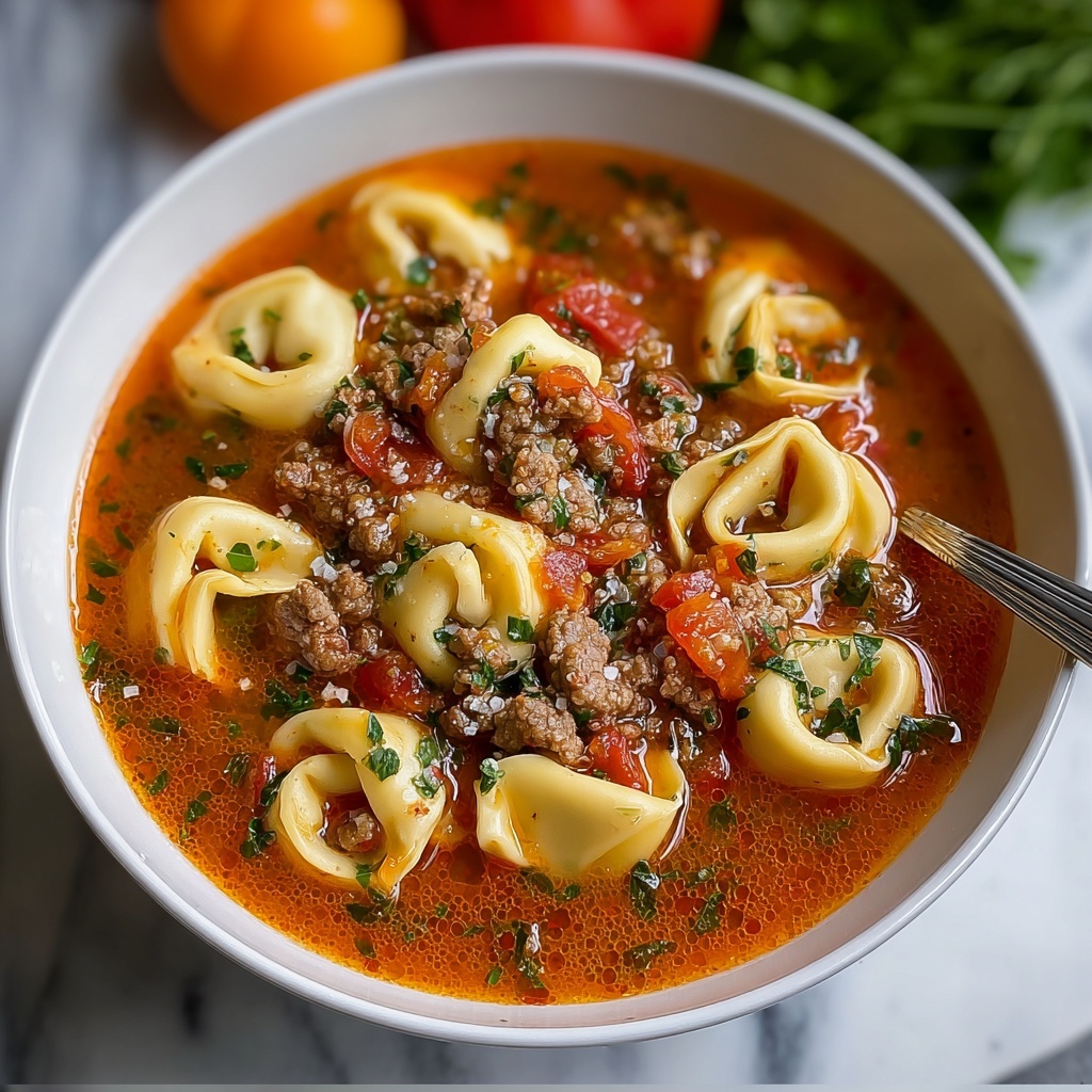 A comforting and hearty Slow Cooker Tomato Tortellini Soup featuring savory Italian sausage, tender cheese tortellini, and a creamy tomato base enriched with chive and onion cream cheese. This easy-to-make soup is perfect for a cozy meal, combining rich flavors developed over slow cooking for 6 hours and a quick finish with tortellini in the last 30 minutes.