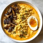Turning this Spicy Coconut Curry Ramen Recipe into an eye-catching meal is simple and fun. Try layering the ramen noodles in the bowl first, then artfully arrange mushrooms, eggs halved, and chives on top. Drizzle chili oil in a swirl for visual drama. Add a sprig of fresh cilantro or Thai basil to bring a burst of green and fresh aroma. For a casual gathering, serve components separately to let guests customize their bowl exactly how they like it—what’s better than personalizing your own delicious bowl of ramen?