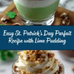 Celebrate St. Patrick’s Day with this festive and delicious layered parfait featuring vanilla pudding, lime gelatin, whipped cream, and crunchy graham crackers or granola. Garnished with green candies and chocolate shavings, this no-bake dessert is easy to assemble and perfect for serving 4-6 guests.