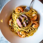This Steak and Shrimp Scampi recipe combines perfectly seared ribeye or New York strip steaks with succulent garlic butter shrimp cooked in a flavorful white wine sauce. Ready in just 30 minutes, this surf and turf dish is an elegant yet simple main course that’s perfect for a special dinner. The garlic, lemon, and fresh parsley brighten the rich butter and olive oil base, creating a deliciously satisfying meal.