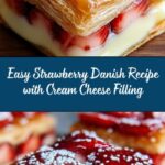 This Strawberry Danish recipe features flaky puff pastry filled with a creamy sweet cream cheese mixture and fresh strawberries, topped with a light egg wash and sugar for added crunch. Perfect for breakfast, brunch, or a delightful dessert, these pastries are easy to make and bake to golden perfection.