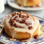 - Assemble and Serve: Drizzle the warm cinnamon rolls generously with the browned butter frosting. Sprinkle the toasted pecans on top for added texture and flavor. Serve immediately while warm and enjoy!