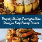 This Teriyaki Shrimp Pineapple Rice Stack is a vibrant and flavorful dish perfect for family meals. Featuring tender jasmine or basmati rice infused with soy and sesame, succulent grilled teriyaki-marinated shrimp, and sweet pineapple chunks, this recipe delivers an exciting fusion of savory and sweet in every bite. Easy to prepare and quick to cook, it’s a wholesome and satisfying meal that everyone will love.