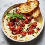 First, preheat your oven to 375°F (190°C). While it warms up, toss those halved cherry tomatoes with olive oil, minced garlic, salt, and black pepper in a bowl. This simple mixture ensures the tomatoes roast evenly and develop a slightly blistered, sweet flavor that will beautifully complement the creamy cheeses.