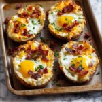 If you love breakfast that feels like a warm hug, then the Twice Baked Loaded Breakfast Potatoes Recipe is going to become your new favorite morning treat. These golden russet potatoes are baked to tender perfection, scooped out and whipped into a creamy, cheesy filling loaded with crispy bacon and fresh green onions, then topped with an egg baked right inside. It’s the ultimate comfort breakfast, combining fluffy, savory, and rich textures in every bite. This dish is an irresistible start to any day and an impressive way to treat yourself or loved ones during a weekend brunch.