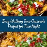 If you’re craving a dish that combines all the fun flavors of a classic taco with the comfort of a warm, cheesy casserole, you’re in for a treat with this Walking Taco Casserole Recipe. It’s like your favorite walking taco turned into an easy-to-make, crowd-pleasing meal that’s perfect for family dinners, game days, or any time you want to bring a little fiesta to the table. With layers of seasoned beef, beans, corn, melty cheddar, and crunchy corn chips baked to perfection, every bite bursts with Tex-Mex goodness that’s sure to satisfy both kids and adults alike.