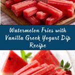 For a fun twist, serve the watermelon fries in individual small cups with a dollop of the vanilla Greek yogurt dip at the bottom, making it easy to grab and enjoy anywhere. You can also drizzle the dip lightly over the fries and sprinkle with chili powder and mint for a beautiful plated look.